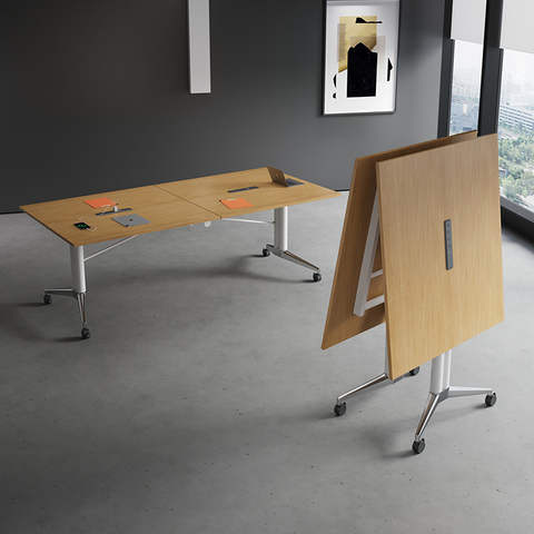 Commercial Wooden Office Furniture Folding Conference Training Table Foldable Desk on Wheels for Meeting Room